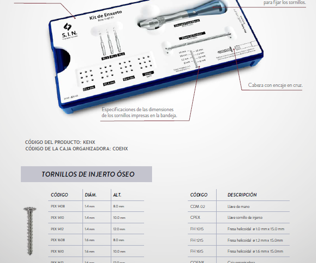 guiada, el Kit de Injerto Óseo cuenta con una llave con encaje en cruz, con el objetivo de dar más